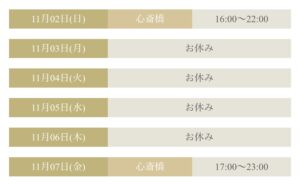 11月の出勤日、明日追加しました✨